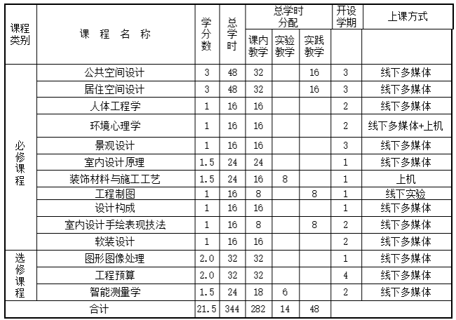 课程主要包括:设计构成、工程制图、居住空间设计、公共空间设计、设计概论、室内设计手绘表现技法、装饰材料与施工工艺、工程预算、图形图像处理。