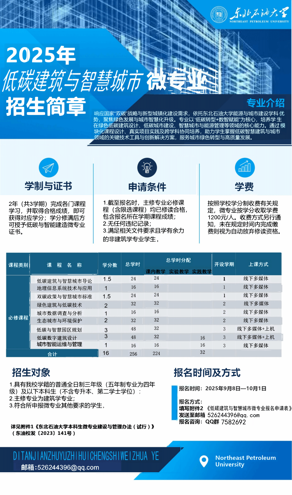报名方式:填写附件2 《低碳建筑与智慧城市微专业报名申请表》,发送至邮箱526244396@qq.com。