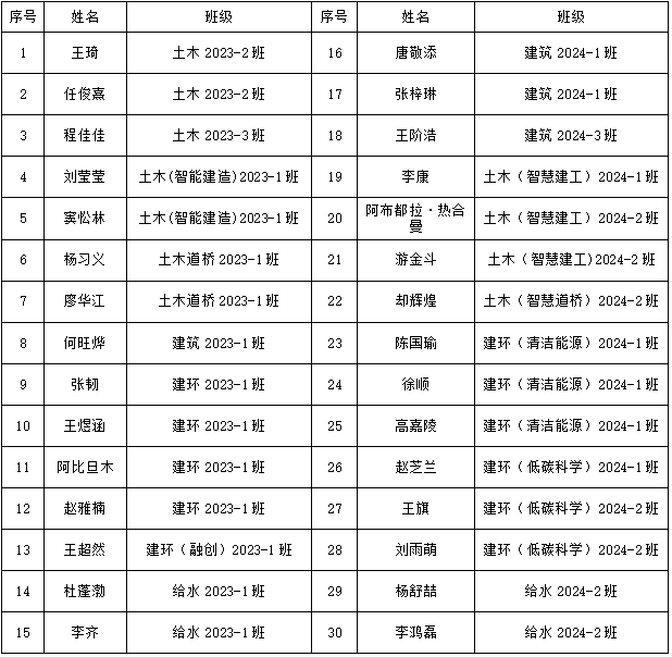 经学生申请、辅导员初审、学院奖助学金评审小组联评,拟王琦等30位同学获得2025-2026年度建晟土木奖助学金,现予以公示。如对评审结果有异议,可在公示期内反映,反映情况和问题必须实事求是。