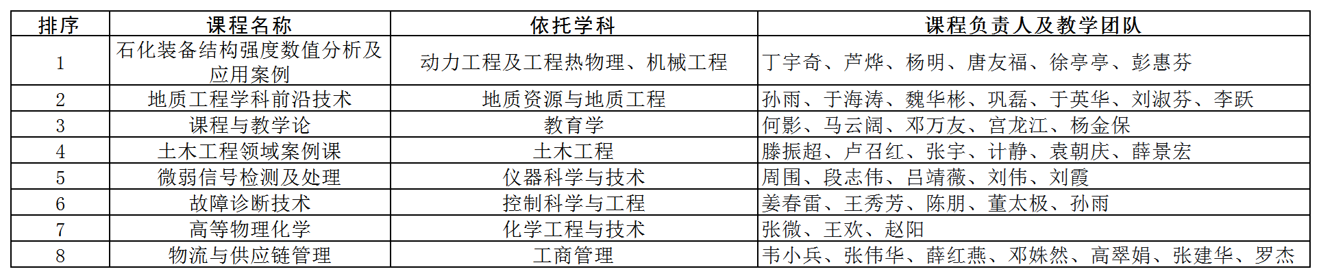 根据《关于开展2025年度研究生精品课程建设项目结题与中报工作的通知》(黑学位办函〔2025〕3号)要求,我校拟推荐“石化装备结构强度数值分析及应用案例”等8门课程参评黑龙江省2025年度研究生精品课程高质量建设项目。