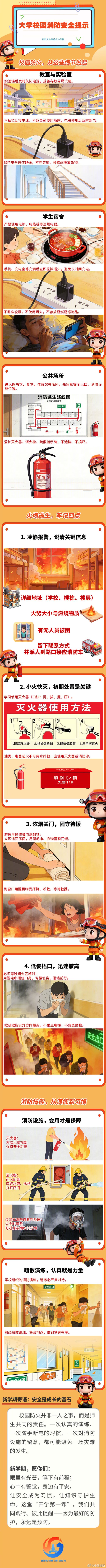 青春逐梦,书香致远,校园是梦想启航的地方,安全是一切美好的前提。宿舍不私拉乱接电线,不使用违规电器,离开教室、寝室记得断电断网;实验室严守操作规程,图书馆、楼道不堵塞消防通道。多一分警惕,少一分隐患,把安全记在心上,护自己一路平安。愿每一位学子,平安奔赴闪闪发光的未来。
