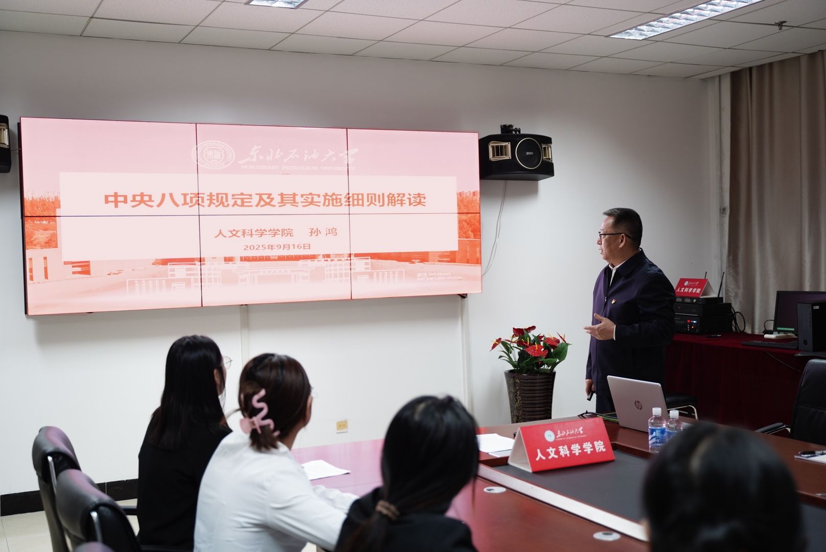 随后,孙鸿书记为全体学员讲授了题为《中央八项规定及其实施细则精神解读》的专题党课。党课围绕中央八项规定的出台背景、主要内容、精神实质及实践要求等方面进行了系统深入地讲解,结合典型案例,教育引导学员深刻认识作风建设的重要性与长期性,增强纪律意识和规矩意识。他强调,作为学生党员,要从小事做起、从自身严起,自觉抵制不良风气,永葆共产党员的先进性和纯洁性。