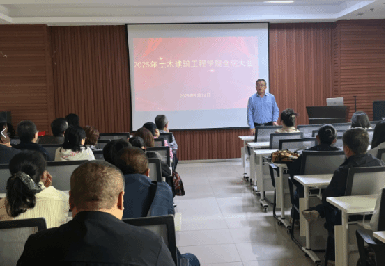 院长李栋从建设双一流专业,优化学科专业结构,加强师资队伍建设,提升教学质量等作出部署。他强调,要持续夯实学科建设根基,注重内涵提升与结构优化,动态调整学科专业方向布局,积极谋划并申报契合社会需求的新兴专业。同时,要进一步深化校企合作与校际交流,有效整合多方优质资源,切实赋能教学创新与科研突破。面对新阶段的挑战与机遇,号召全体教师凝聚共识、勇于担当,以高度的责任感和主动作为的精神,共同推动学院内涵式发展,奋力开创事业发展新局面。