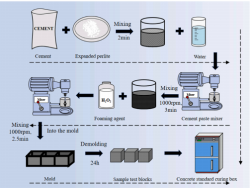 本研究采用膨胀珍珠岩作为发泡混凝土中的集料,系统性地考察了单粒径和多粒径级配在不同水胶比下对关键性能的影响,包括干密度、吸水率、抗压强度和热导率,并通过微观结构分析阐明了背后的机理。研究结果建立了混合参数与材料性能之间的定量关系,为理解珍珠岩级配在孔结构发展中的作用提供了理论基础。同时,它们还为混合设计提供了实用指导,以平衡强度和隔热要求,并强调了系统集成和标准化中可能面临的挑战。因此,这项研究不仅有助于对珍珠岩基发泡混凝土的科学理解,还对其在轻质、节能和可持续建筑领域的工程应用做出了贡献。