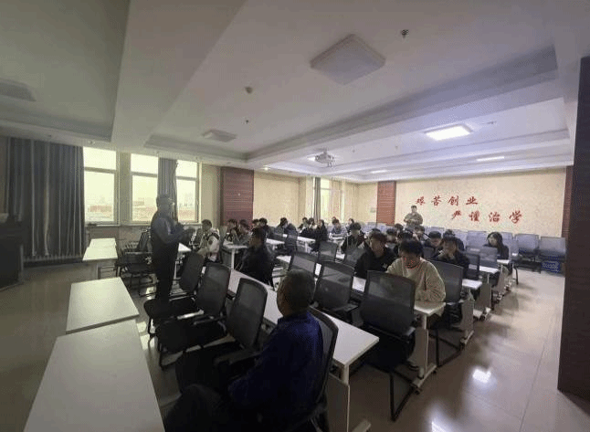 付荣智利用多年促就业经验、从细节处为大家提气支招,他要求同学们既要保质保量完成学位论文,又要精准定位投递求职简历,争取早签约。他鼓励同学们将个人理想融入国家需求,凭借真才实学报效社会,在新时代新征程中书写青春答卷。