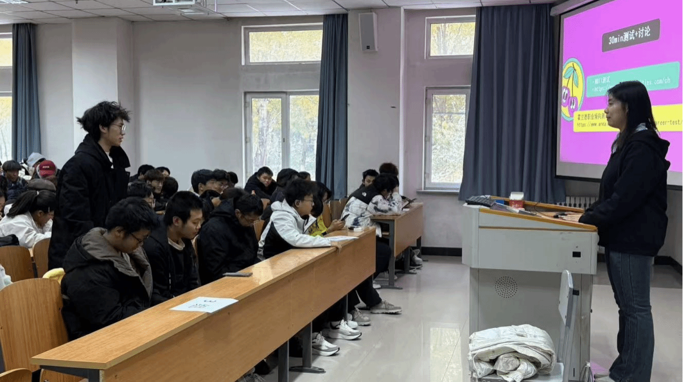 活动伊始,学院23级优秀团学干部桑子惠清晰地介绍了活动背景与流程,迅速激发了同学们的参与兴趣。过程中,学生们首先沉浸式完成了MBTI性格测试与霍兰德职业兴趣测评。通过科学的测评工具,大家对自身的性格特质、潜在优势以及感兴趣的职业领域有了初步的量化认识。