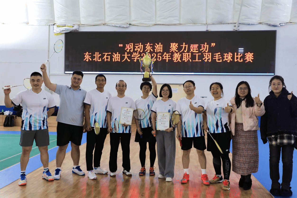 10月31日晚,由校工会主办、地球科学学院工会承办的“羽动东油 聚力建功”东北石油大学2025年教职工羽毛球比赛在气膜馆圆满落幕。经过4天紧张激烈的小组赛、淘汰赛与决赛角逐,我院获得团体组亚军、工会组第五名的好成绩。