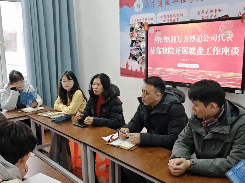 为精准对接优质企业资源,助力我院毕业生实现高质量就业,11月4日,我院邀请上海市万方博通石油化工工程有限公司代表在启智一站式学生社区开展就业座谈会。土木建筑工程学院党委副书记王媛媛、辅导员程蕊、于琬莹与公司代表以及2026届土木专业、给水专业班长参加。