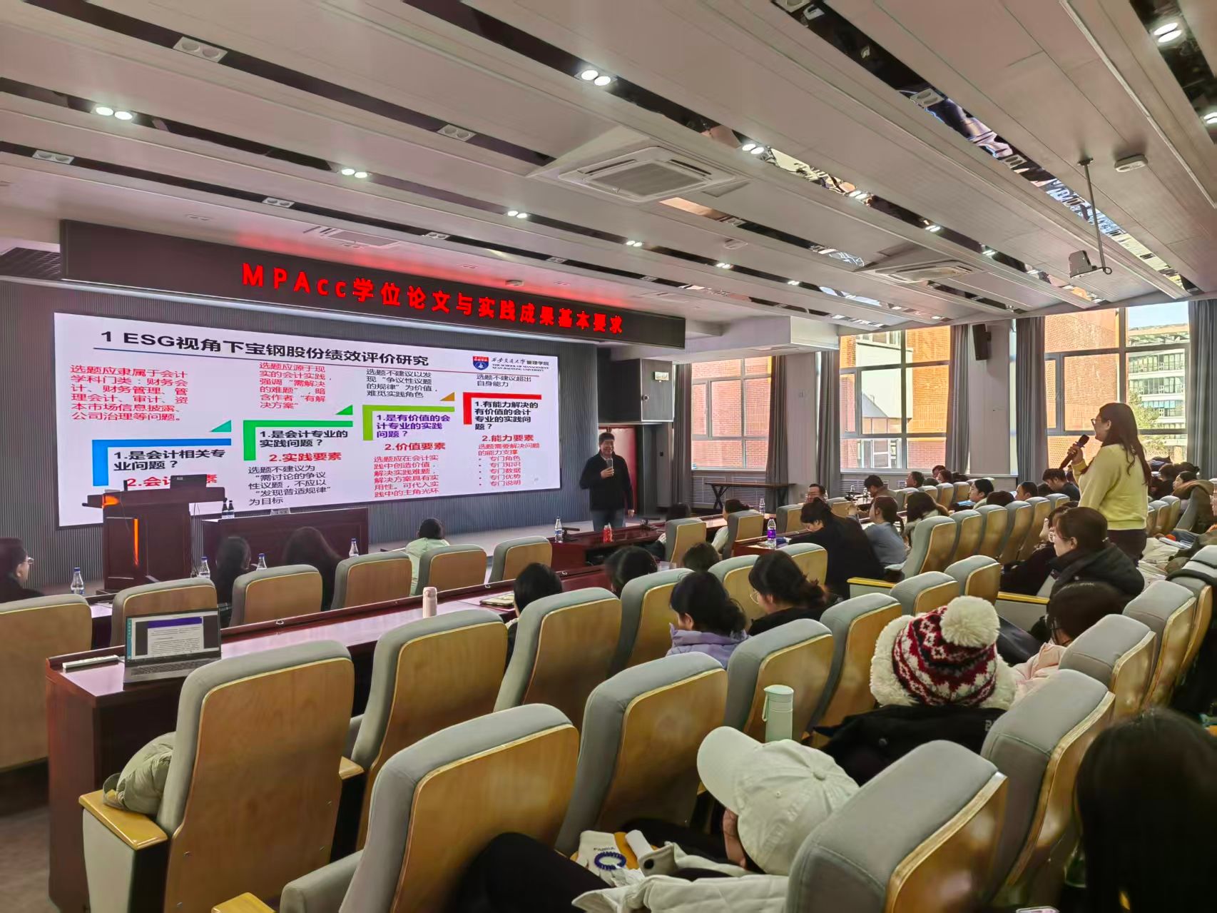 在互动环节,与会师生就论文选题和职业规划等问题与汪教授进行了广泛的交流,现场学术氛围浓厚。本次讲座的成功举办,为我院MPAcc学位论文的开展提供了重要指导,也为提升MPAcc培养质量提供了有益借鉴。