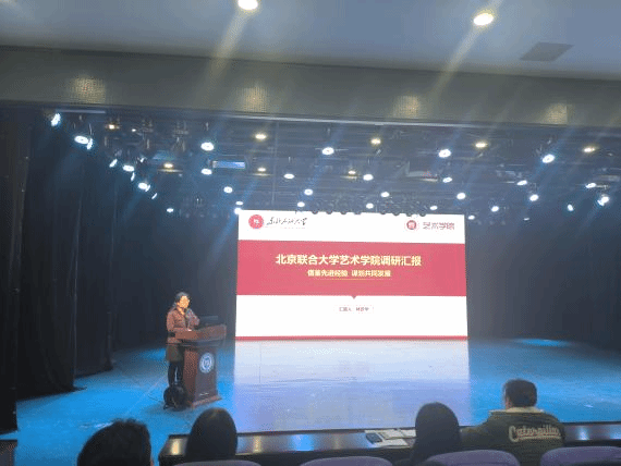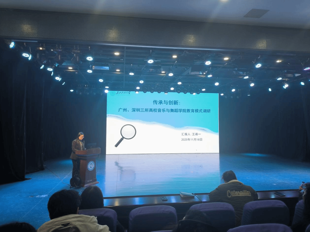 随后,副院长王靖一分享了赴华南地区三所高校的调研成果,包括广州大学音乐与舞蹈学院、广东外语外贸大学艺术学院以及深圳大学艺术学部音乐舞蹈学院。她详细介绍了这些院校在跨学科融合、实践教学体系构建以及服务地方文化建设方面的先进经验,引发了与会者的深入思考。
