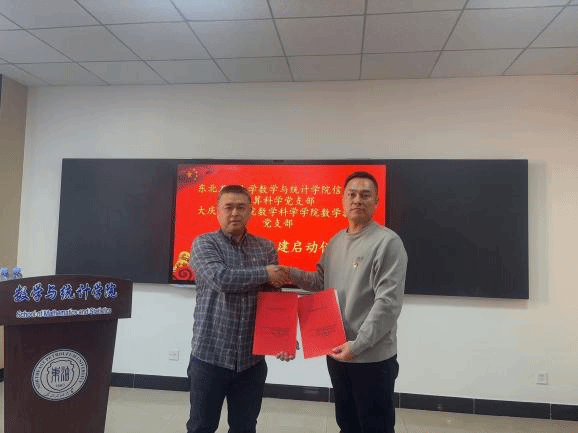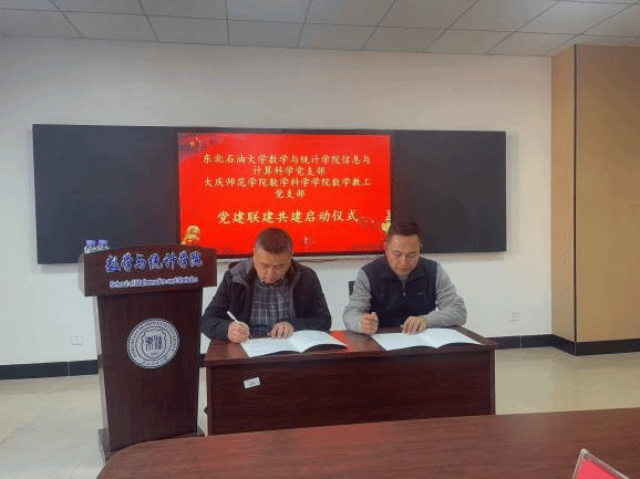 随后,东北石油大学数学与统计学院信息与计算科学系党支部书记高伟与大庆师范学院数学科学学院教工党支部书记金天坤共同签署了党建联建共建协议。这一协议的签署,不仅是一份承诺,更是双方携手共进、共同发展的决心体现。协议明确了共建目标、共建内容、注意事项以及有效日期等重要事项,为双方后续的深入合作提供了清晰的框架和指引。