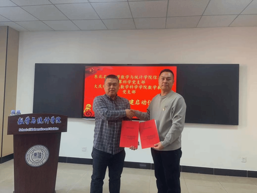 随后,东北石油大学数学与统计学院信息与计算科学系党支部书记高伟与大庆师范学院数学科学学院教工党支部书记金天坤共同签署了党建联建共建协议。这一协议的签署,不仅是一份承诺,更是双方携手共进、共同发展的决心体现。协议明确了共建目标、共建内容、注意事项以及有效日期等重要事项,为双方后续的深入合作提供了清晰的框架和指引。