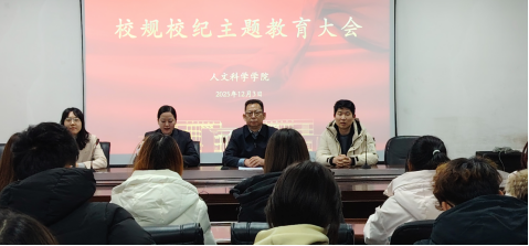 为深入贯彻落实立德树人根本任务,进一步增强学生纪律观念与规矩意识,共同营造文明守纪、积极向上的校园文化氛围,我院于12月3日下午在1A118召开校规校纪主题教育大会。学院党委书记孙鸿、全体辅导员及各班级班长、团支书等35名学生骨干参加会议。会议由学工办副主任董王南主持。