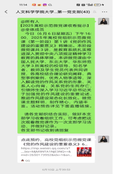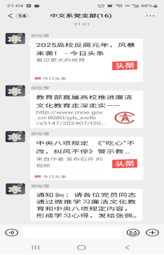在宣传引导方面,学院创新线上线下联动模式,借助宣传栏、党员微信群等载体,累计发布典型案例剖析20余个,活动预告5次,以图文并茂、通俗易懂的形式传递崇廉尚洁理念。同时,组织全体党员集中收看 2025年高校党组织示范微党课,深入学习党的作风建设重要意义,推动中央八项规定精神入脑入心。