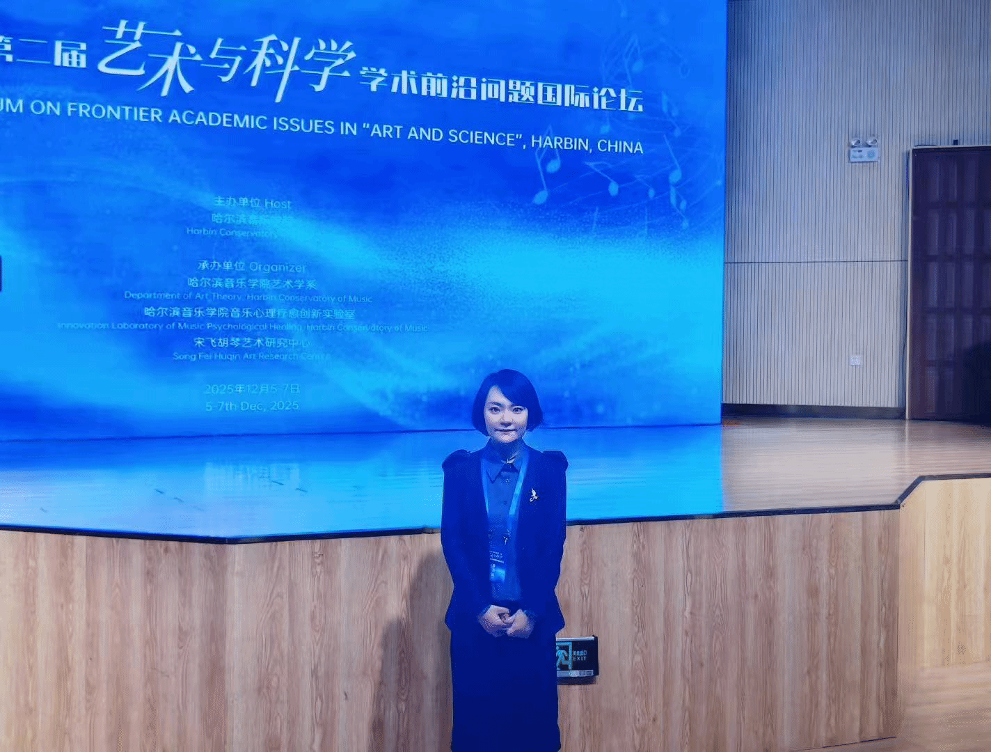 2025年12月5-7日,艺术学院闫红副教授受邀参加在哈尔滨音乐学院举办的中国哈尔滨·第二届‘艺术与科学’学术前沿问题国际论坛,并在分议题二:艺术与心理疗愈专题中作《艺愈共生—主题式整合艺术疗愈的跨群体症状靶向应用探索》主题发言,围绕主题式整合艺术疗愈在不同群体中的靶向干预实践展开探讨,创新性、应用性强,受到与会专家学者的一致认可与好评。