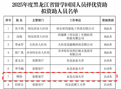 近日,黑龙江省人力资源和社会保障厅按照《关于开展2025年度黑龙江省留学回国人员择优资助工作的通知》(黑人社函〔2025〕450号)有关安排,对2025年度黑龙江省留学回国人员择优资助人员进行公示。我院教师樊铮入选本年度拟资助人员名单,本年度全校仅有1人入选。