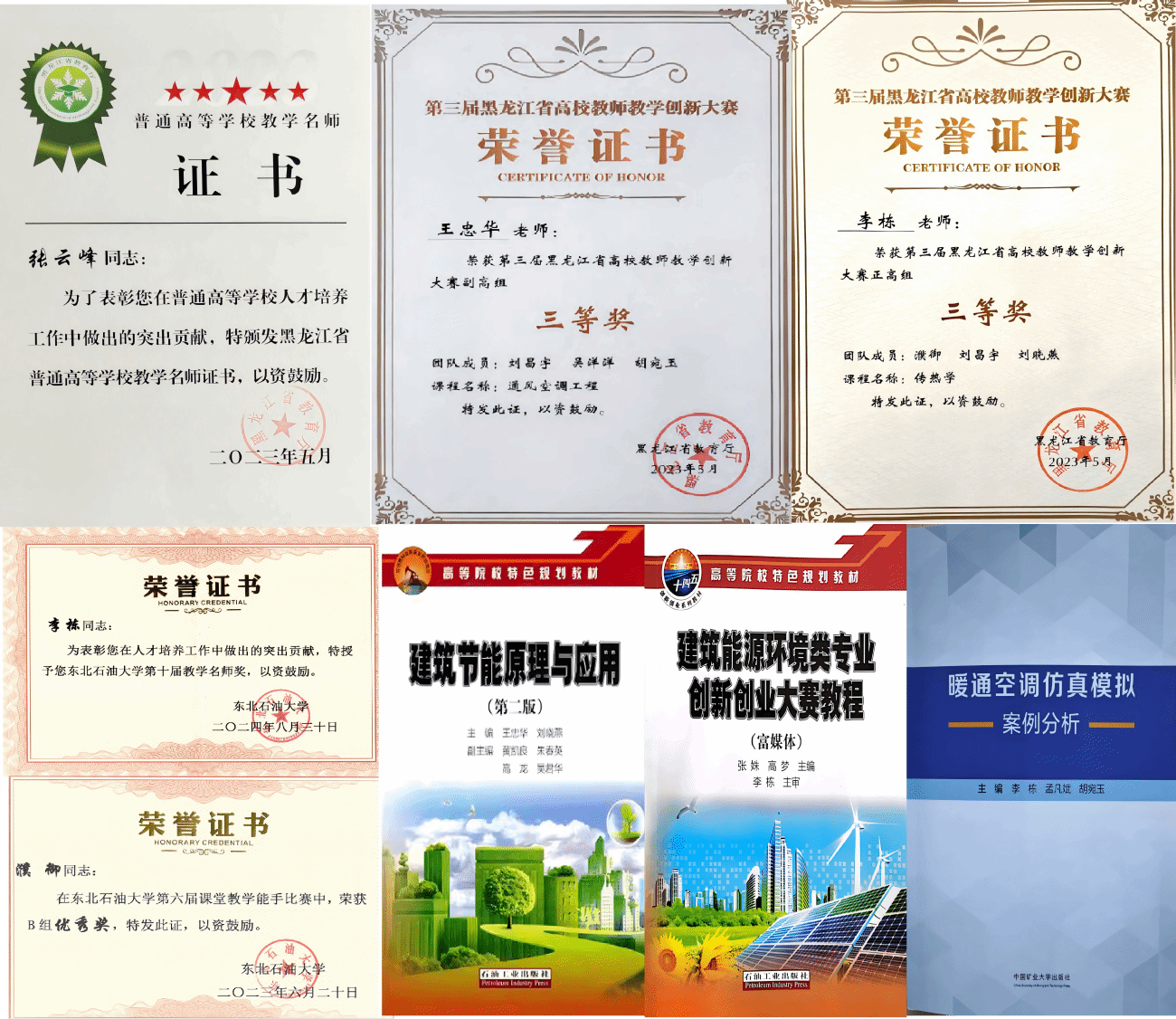 4. 教学成果获得新成绩。新增省教学名师1人、校级教学名师1人、校教学能手1人,获得黑龙江高校教师教学创新大赛奖励2项,新建国家级一流课程1门、省级一流课程1门、省级研究生案例课程2门,出版教材3部。