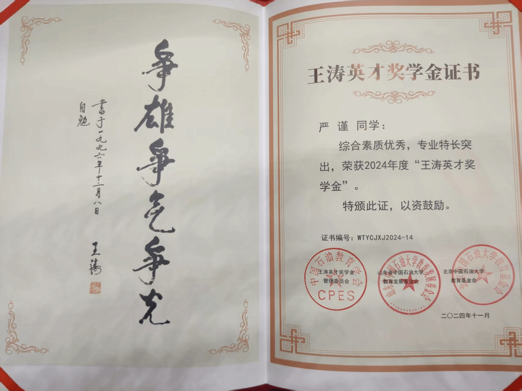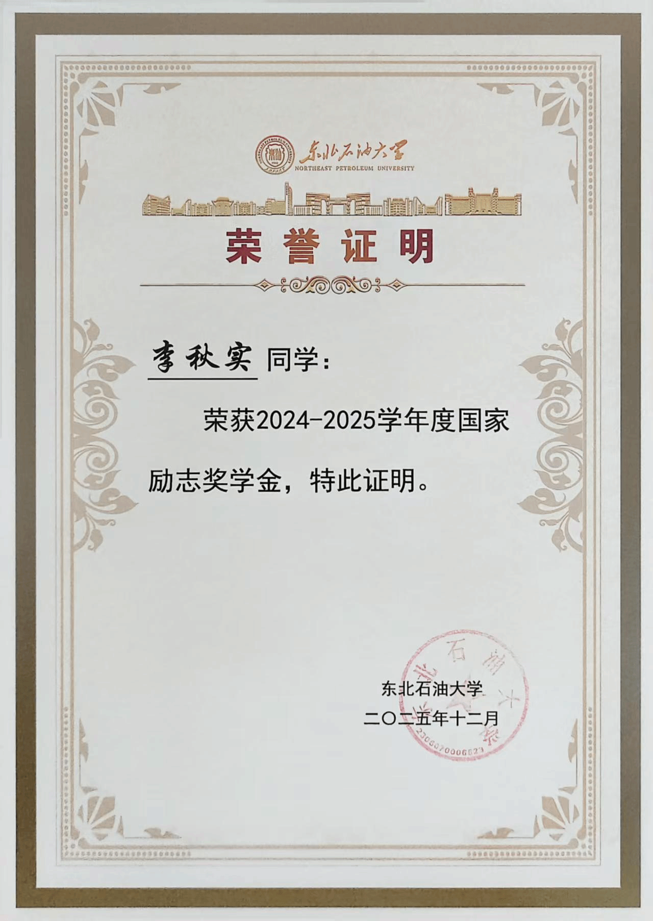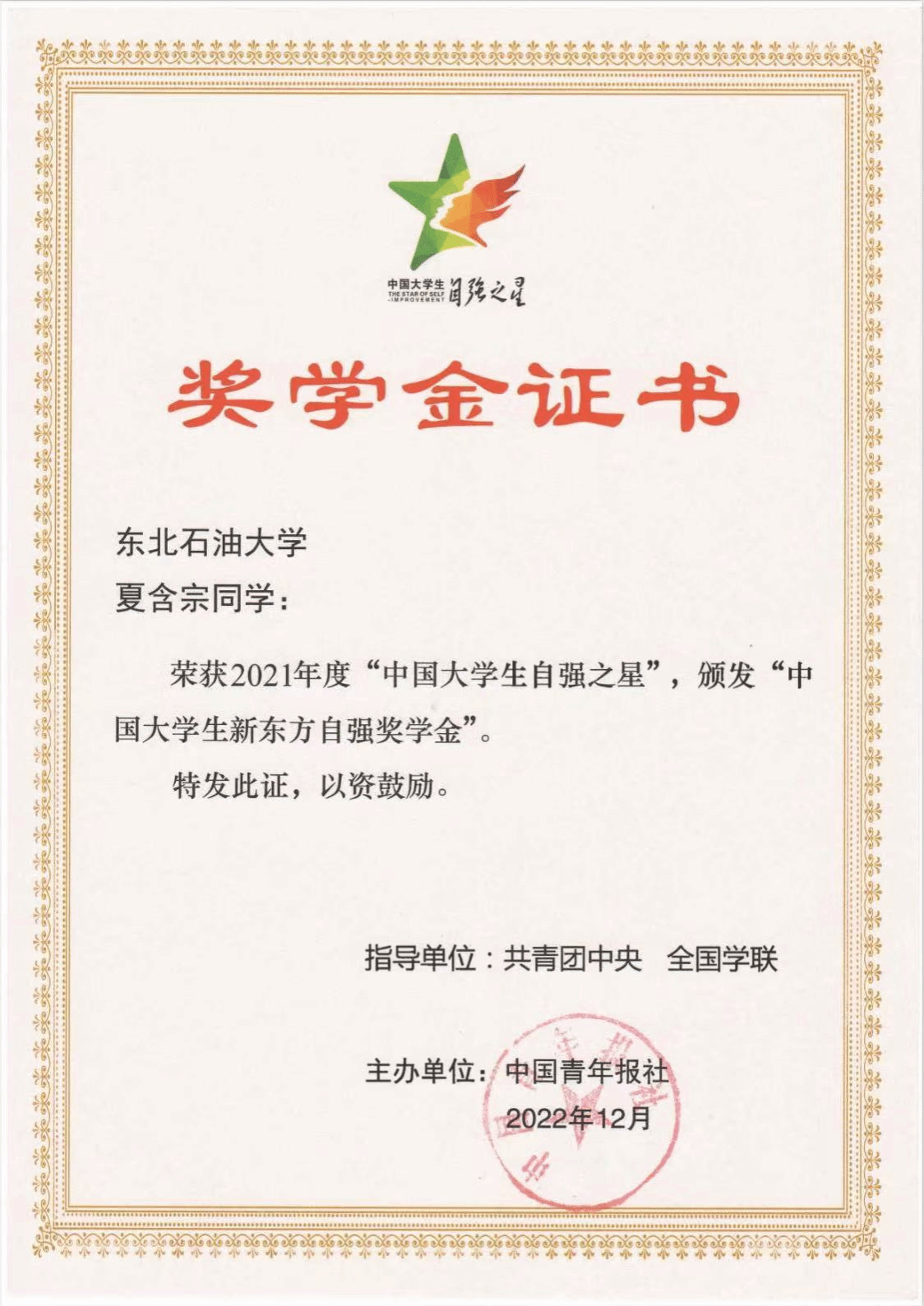 10. 学生培养质量明显提升。五年来,1464人,硕士研究生325人,博士研究生4人。1名博士生荣获“中国大学生自强之星”、人民网奖学金、“大学生年度人物”入围奖,1名本科生荣获“中国大学生自强之星”,1名学生获评“黑龙江省助力‘兴边富民’计划大学生支教团优秀志愿者”荣誉称号。1篇博士学位论文获评“新时代龙江优秀博士学位论文”重点项目。国家奖学金获得者29名,国家励志奖学金获得者246名,中石油奖学金获得者17名,王涛奖学金1名,王玉普奖学金3名,校“学术之星”4名。