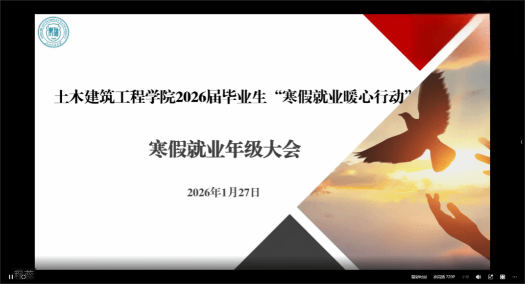 为精准助力2026届毕业生把握寒假就业关键期,1 月 27 日,土木建筑工程学院组织召开“寒假就业暖心行动”线上年级大会。学院党委副书记王媛媛、三家企业代表、毕业班辅导员、往届优秀毕业生代表及全体意向就业毕业生参会。