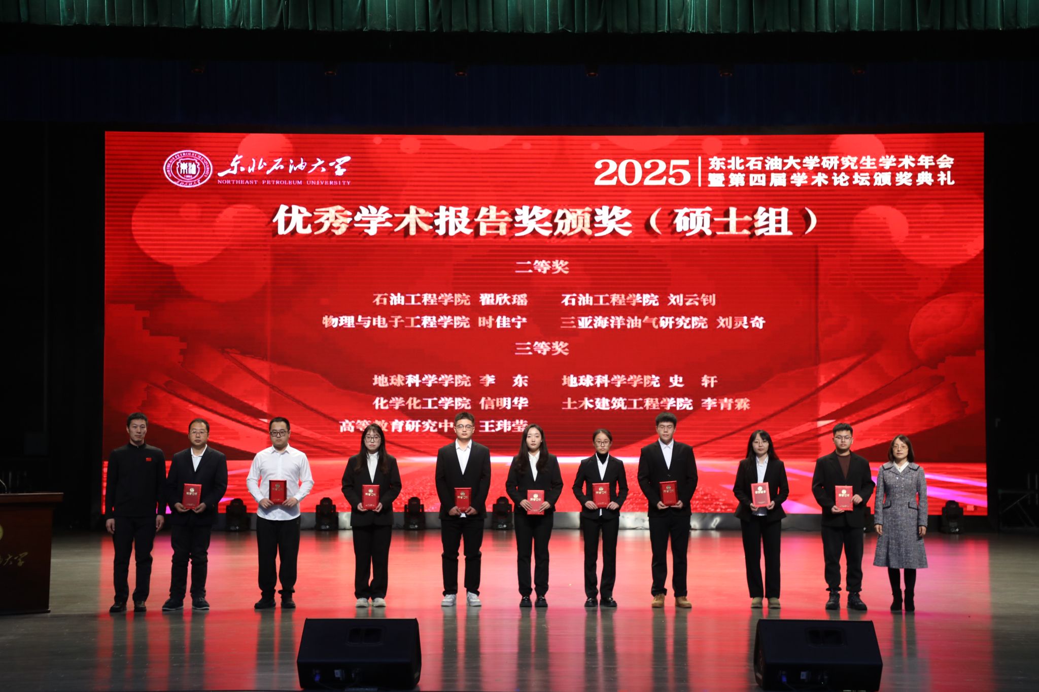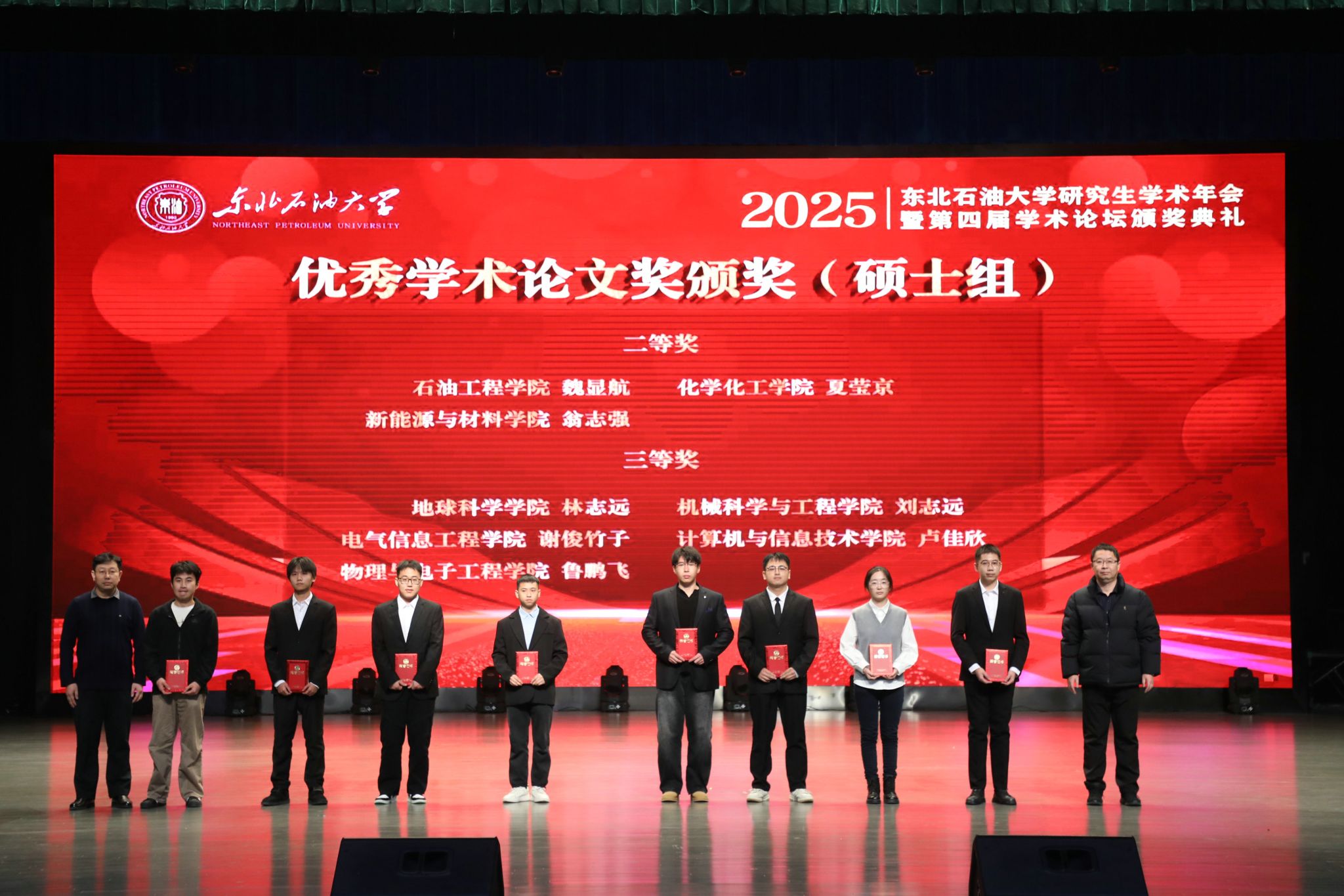 经专家评审,最终评选优秀学术论文奖博士组8名、硕士组22名;优秀学术报告奖博士组11名、硕士组23名;专业实践杰出奖6名、优秀奖10名。地球科学学院、石油工程学院、化学化工学院、物理与电子工程学院、马克思主义学院获优秀组织奖。