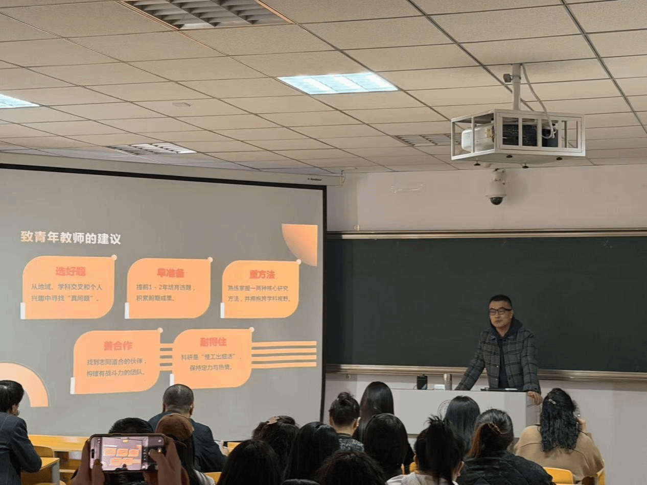 为深化地域音乐文化研究,提升师生学术素养,2025年4月1日,艺术学院在美术楼205教室成功举办专题学术报告。本次报告特邀伊善斌主讲,题目为《从立项到结项:教育部人文项目〈东北站人群体音乐文化考察与研究〉分享汇报》。艺术学院院长林庆华主持会议,学院教师、研究生及音乐专业本科生到场聆听学习。