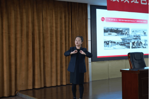 据悉,由于有一部分听障大学生现场聆听报告,绥化学院特殊教育学院李泽卉老师全程进行了手语翻译,进一步扩大了大庆精神(铁人精神)传承弘扬的覆盖面。