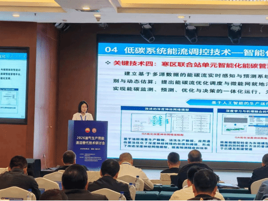 会议期间,杨瑞桐副教授受邀作大会报告,报告围绕“双碳”目标背景下油气田能耗与碳排放问题,系统阐述了多能源协同优化路径、碳排放监测与诊断技术以及低碳系统能流调控方法,从太阳能利用、地热耦合、相变储能及智能调控等方面提出了系统性解决方案,引起与会专家的广泛关注与积极讨论。